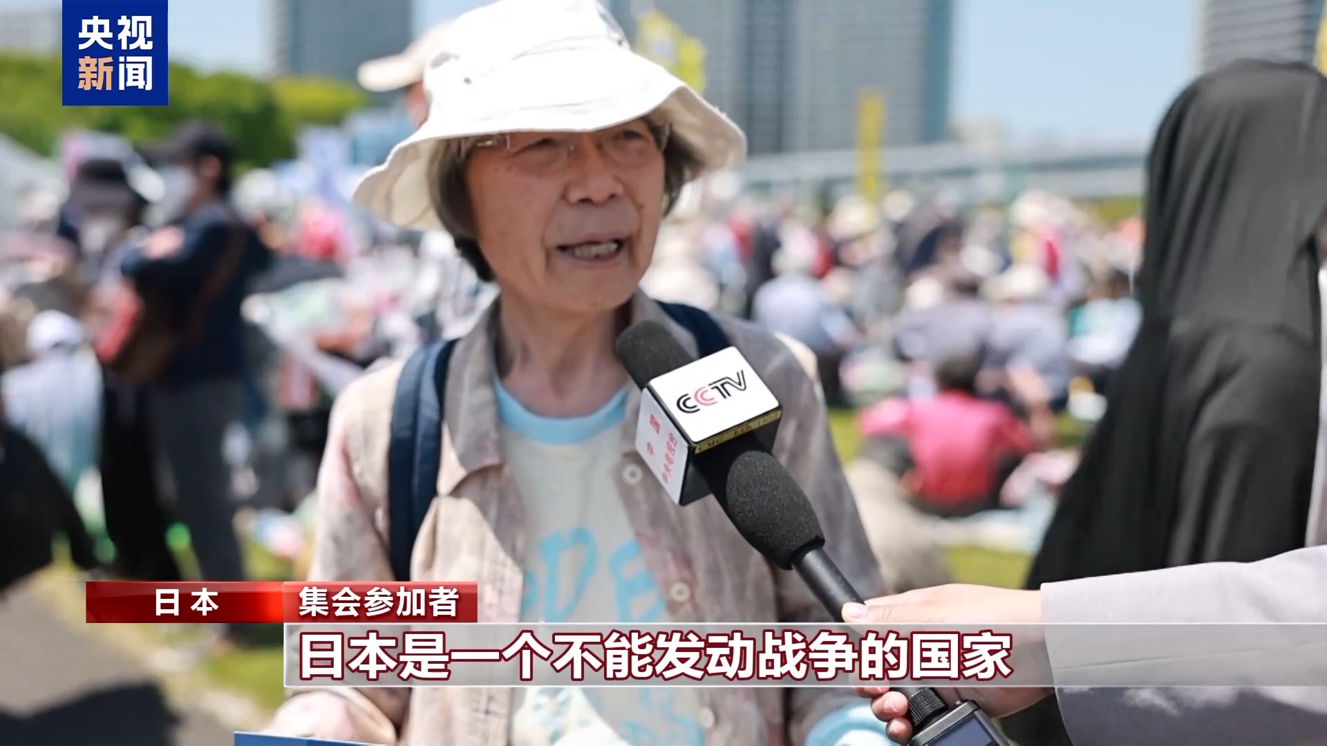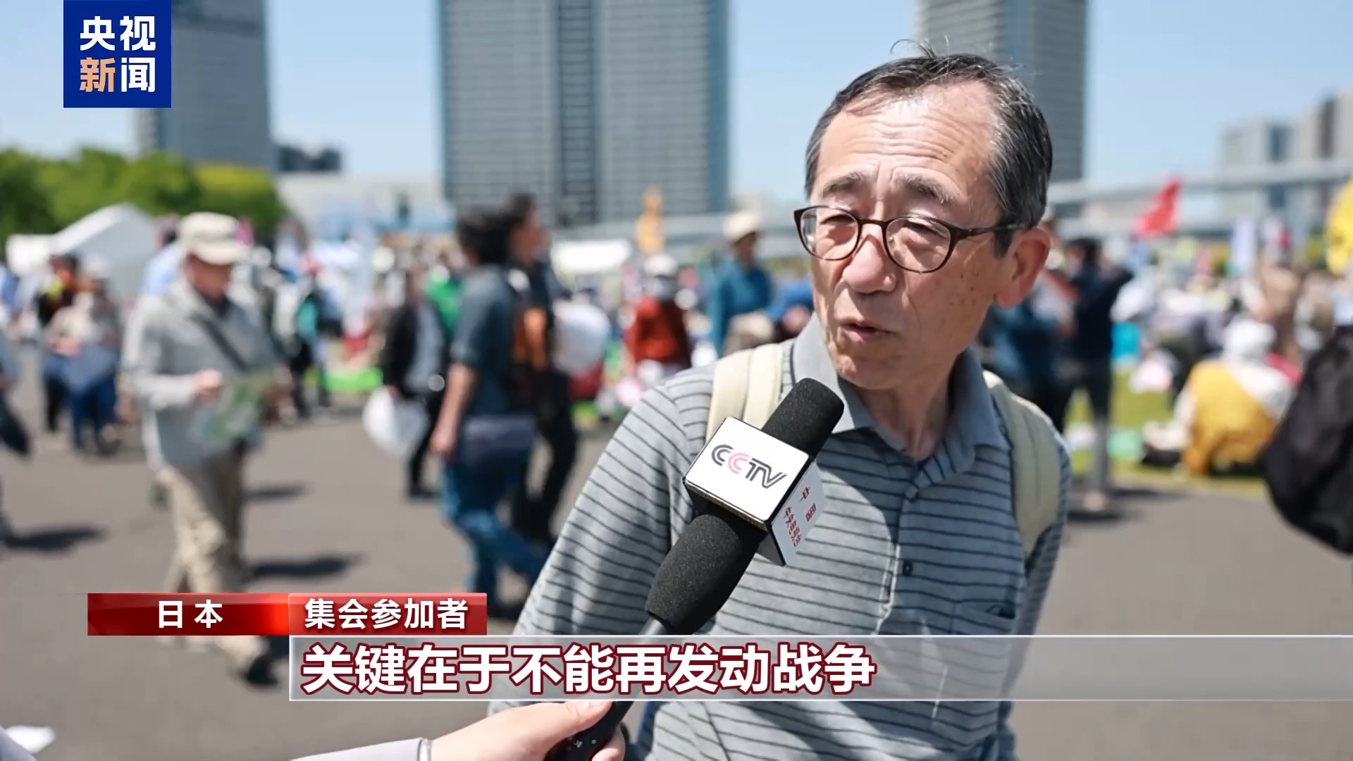 总台记者 何欣蕾:在集会现场,集会者手里拿着不同的标语,有的上面写着“爱护宪法 守护世界和平”,有的上面写着“反对扩军 守护生命 关注日常生活”。大家通过这样的方式来表达对于和平的守护以及对于扩军的反对。
