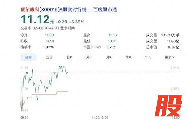 受该消息影响,2月6日上午,爱尔眼科开盘后的股价跌幅超过3%。
