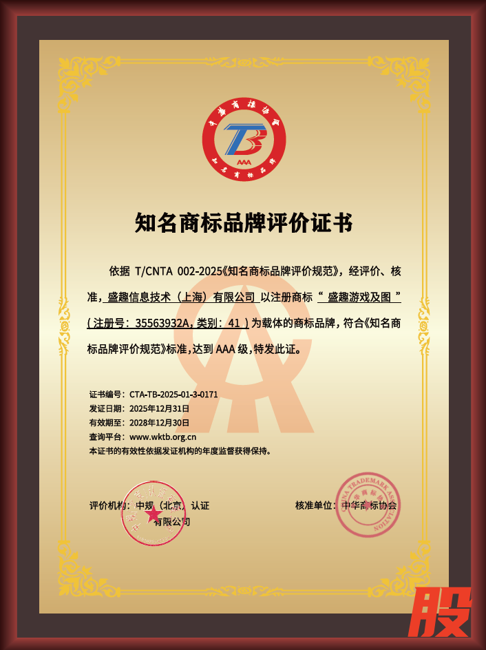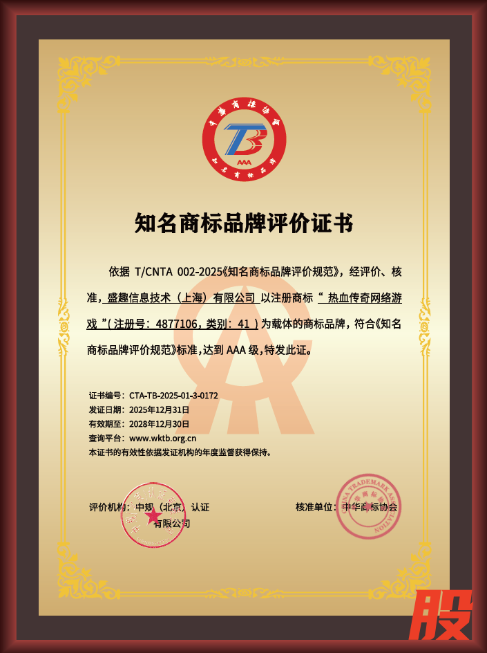 近日,世纪华通(维权)(002602.SZ)旗下公司品牌“盛趣游戏”及产品品牌“热血传奇”成功荣获“AAA知名商标品牌”认定。该认定依据《知名商标品牌评价规范》(T/CNTA002-2025)团体标准,由中规(北京)认证有限公司现场评价,并通过中华商标协会知名商标工作委员会的严谨评审程序,是最高等级的“AAA”级认证。这一荣誉认定,是对“盛趣游戏”与“热血传奇”在品牌综合实力、行业影响力以及知识产权保护体系等多方面的权威认可。